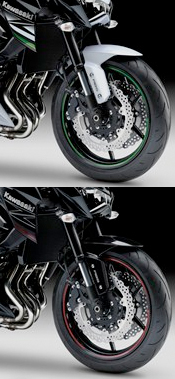Los colores de las llantas Z800 ← Anterior Siguiente → Aquí se aprecia mejor la tricromía de las Z y las llantas que realzan su perfil.