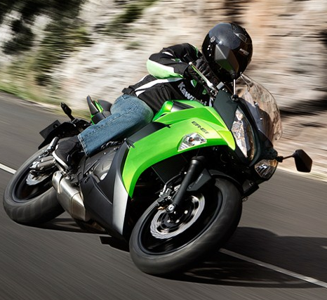 Kawasaki Er6F ← Anterior Siguiente → La Er6 con protección aerodinámica contra el viento y la lluvia.