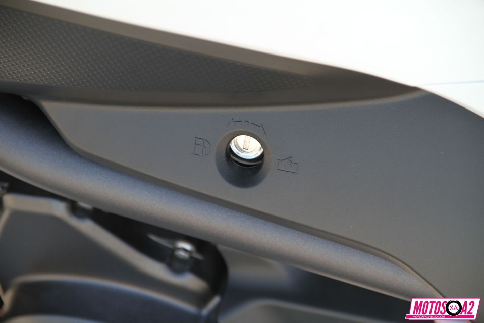Depósito o maletero ← Anterior Siguiente → Aquí abrimos el hueco del casco o el asiento trasero para echar gasolina