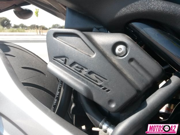 Si algo no me ha convencido -y se ha visto acrecentado por que tenía la suspensión delantera en plan confort- es la mordida de las pinzas y el funcionamiento del ABS. No es que esté corta de frenos, no me malinterpretéis. Es que son poco comunicativos y parece que ‘resbalen’. Para bloquear -es decir despertar al ABS- hay que apretar muy fuerte y la respuesta no termina de ser lineal. Por supuesto que para sacarle estos colores hay que ir muy fuerte y no es el propósito de esta moto. Frenar, frena y bien… como naked deportiva es exactamente equilibrada. En cuanto al ABS he tenido una experiencia que tacharé de negativa -ojo, que me ha pasado en otros modelos pero esta casi acaba en arrastrón-: