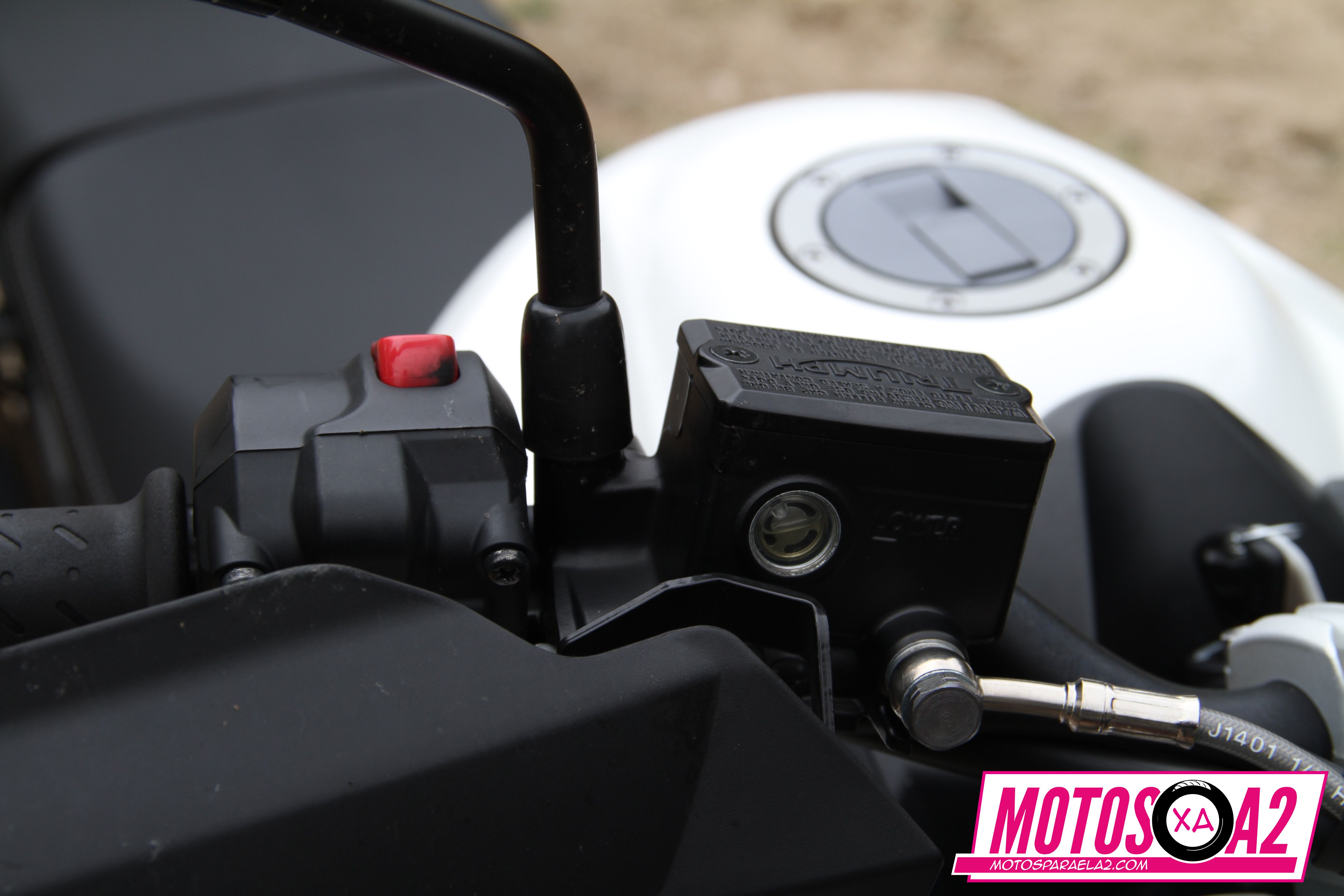 Este detalle siempre me molesta, que el indicador esté hacia delante en algunas motos y no pueda saber que me he quedado sin frenos si hubiera algún problema.