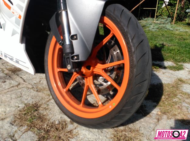 Para probar la moto he tenido que, como es lógico, comerme un trance de autopista. La moto resulta más estable y cómoda que una Duke390 gracias al carenado -como es lógico-. Y la postura deportiva no molesta en las muñecas, es bastante cómoda -para lo que es-. Parece tener menos problemas a la hora de llegar a su velocidad máxima gracias a la aerodinámica, nos podemos encontrar en unos 170km/h pero es hasta los 130 km/h donde esta moto responde aún con brío -¡qué más queremos!-