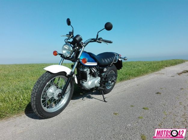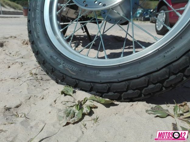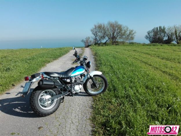 La moto es cómoda, bonita, con el ‘royo postureo’, tiene el neumático trasero de 180 -que nos puede hacer tumbar a muerte -y esto lo he demostrado-. Consumo muy reducido, fiabilidad infinita -dentro de los límites de la física, por supuesto-. Cuesta abajo, al ser tan ligera, si vas bien equipado y eres hábil puedes convertirte en un verdadero demonio del descenso por las curvas de puertos de montaña -también demostrado-. ¿Y que quieres salir al campo? con sus neumáticos de tacos mixtos, llanta delantera de 18’ y balón trasero para amortiguar a base de caucho las rocas del terreno resulta ideal para aventurillas.